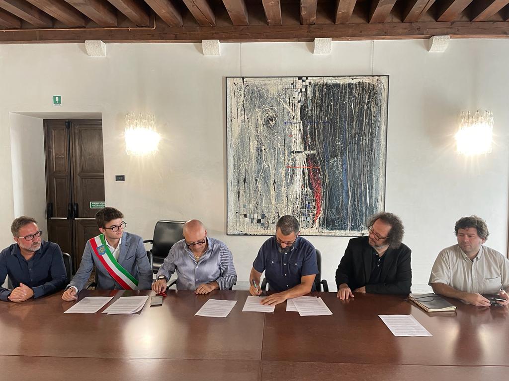 La firma del protocollo è avvenuta nel Castello di Coloredo alla presenza di Girolamo Deraco, Eduardo Caballero, Roberto Giurano della Fondazione Scriptorium Foroiuliense, Luigino Bottoni, presidente della comunità collinare del Friuli e Massimo Pischiutta, assessore alla Cultura di San Daniele.